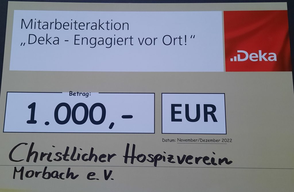 1000€ für den guten Zweck: DekaBank unterstützt den Christlichen Hospizverein Morbach e.V.!