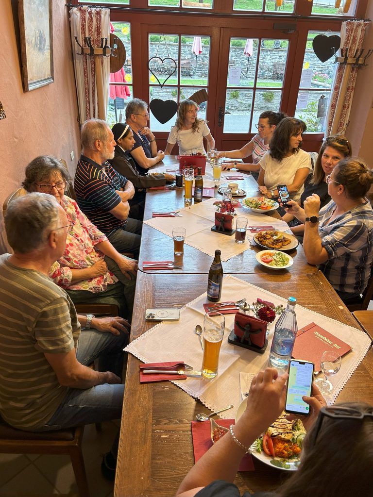Gut gelaunt fuhren wir schließlich zum Hunolsteiner Hof, wo ein leckeres Abendessen auf uns wartete. Bei guten Gesprächen und dem Austausch der frisch gewonnenen Eindrücke fand dieser besondere Tag seinen gemütlichen Ausklang.